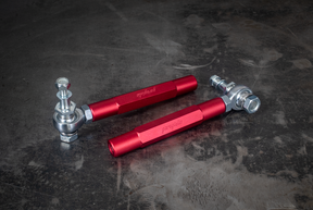 These are the beefiest units on the market today while still being lighter than OEM. Made Precision CNC machined monster SOLID 1" Hex! Most units on the market today are made with 1" hollow round tubing with a small slot for adjustments. Our monster 1" hex shape allows for a 1" wrench to be placed anywhere on the rod to adjust! No more stripped slots! These WILL handle the abuse of racing and drifting. Sold as a pair (enough to do one car).